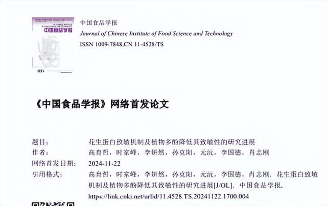 [1]高育哲,时家峰,李妍然,等.花生蛋白致敏机制及植物多酚降低其致敏性的研究进展[J/OL].中国食品学报,