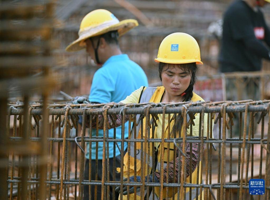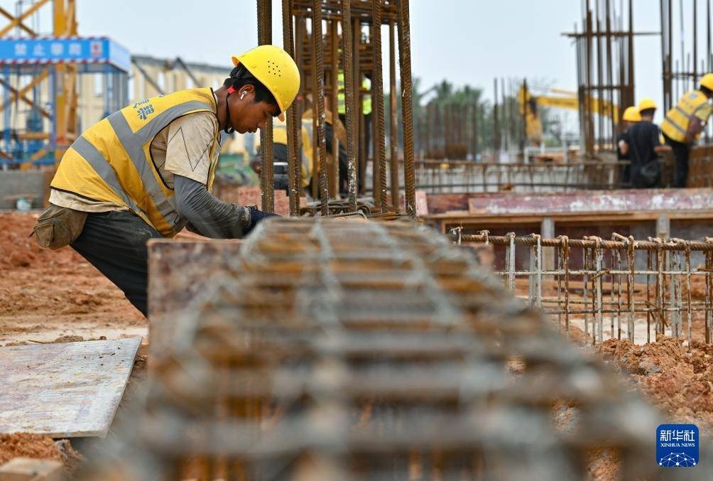 10月25日,工人在海南莫斯科动力大学(筹)校区建设现场施工。